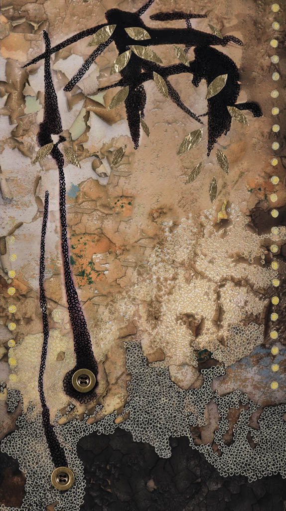 Digital Print with Cut Paper and Silver Leaf